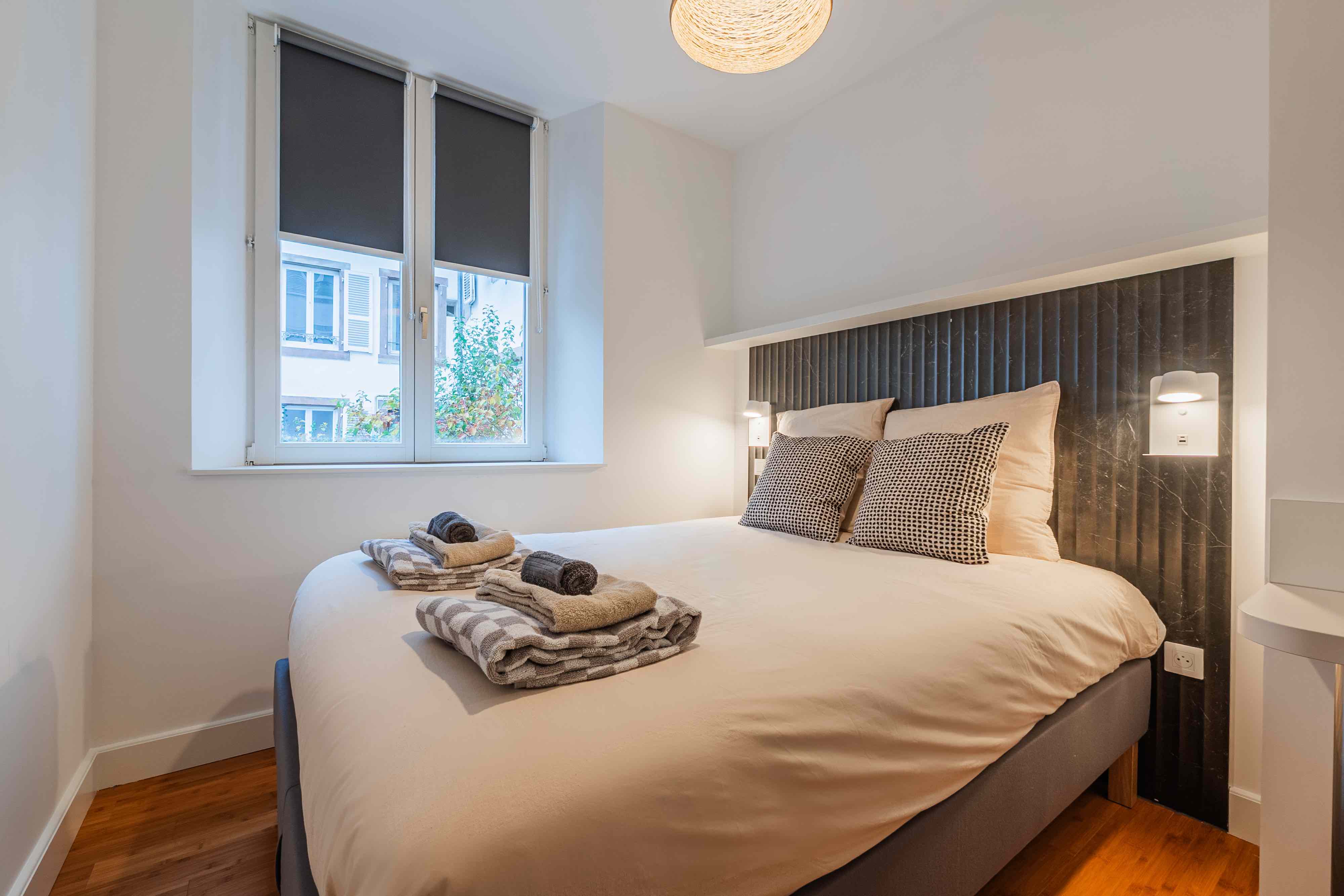 Yes, major transport options are nearby. The tram station “Langstross, Grand’rue” is less than 100 meters from the apartment, and Strasbourg train station is a 10-minute walk.